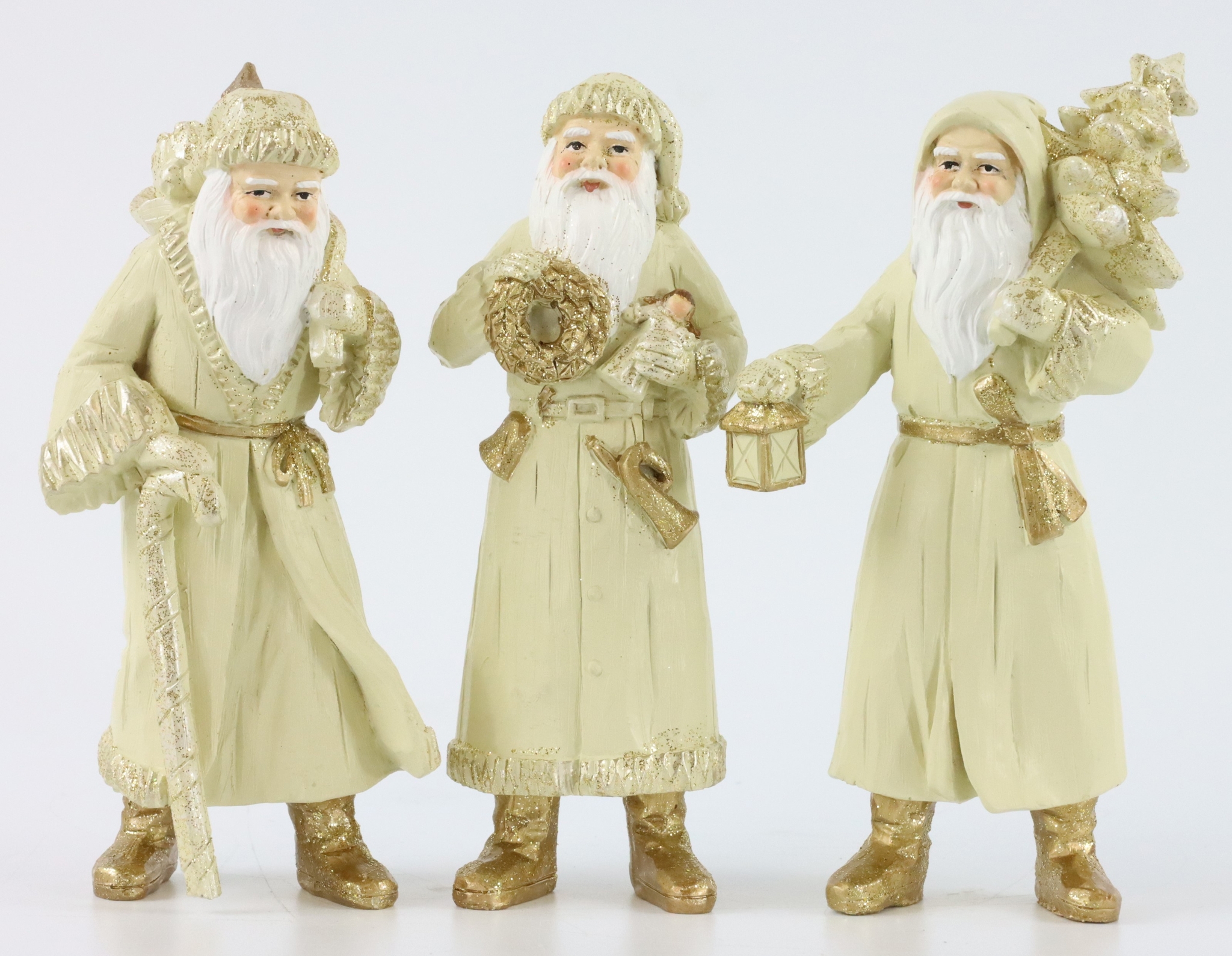 Nuestro set consta de tres figuras detalladas de Papá Noel, cada una de las cuales mide aproximadamente 15,5 cm de altura. Gracias al robusto y duradero material de poliresina, estas figuras no sólo son muy decorativas, sino también resistentes a los daños, lo que las convierte en la elección ideal para su uso habitual en la tienda de fin de año. Están pintadas en colores clásicos para ofrecer un aspecto tradicional que nunca pasa de moda y hará las delicias de clientes de todas las edades.