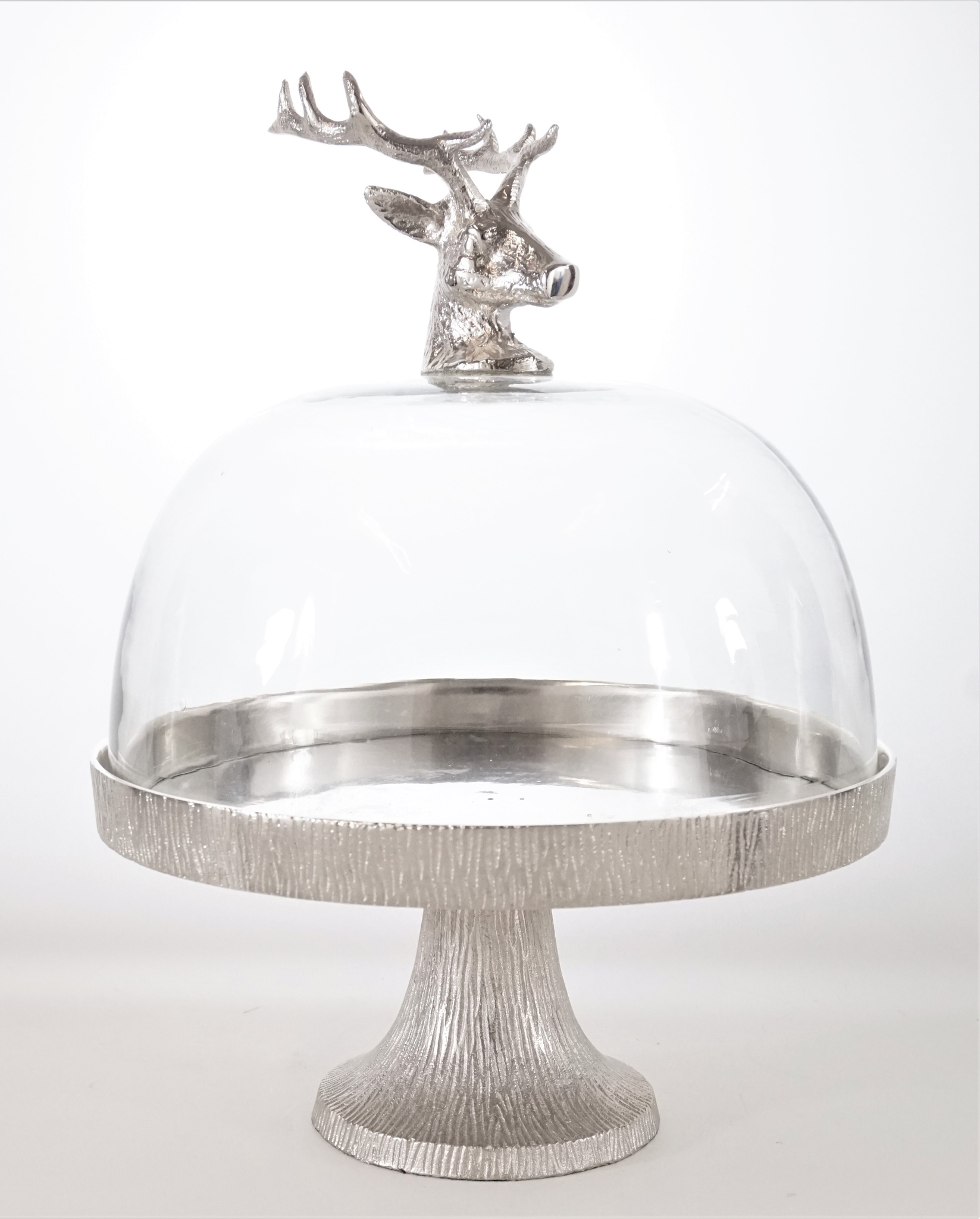 La campana de copa "Ciervo" está fabricada en aluminio y cristal de alta calidad y brilla en un atemporal color plateado. El diseño es una armoniosa interpretación de la elegancia rústica que se integra a la perfección en la gama de productos existente. El motivo del ciervo confiere a la campana de copa un encanto especial y simboliza las estaciones de invierno y otoño, cuando la naturaleza muestra su lado más fuerte.