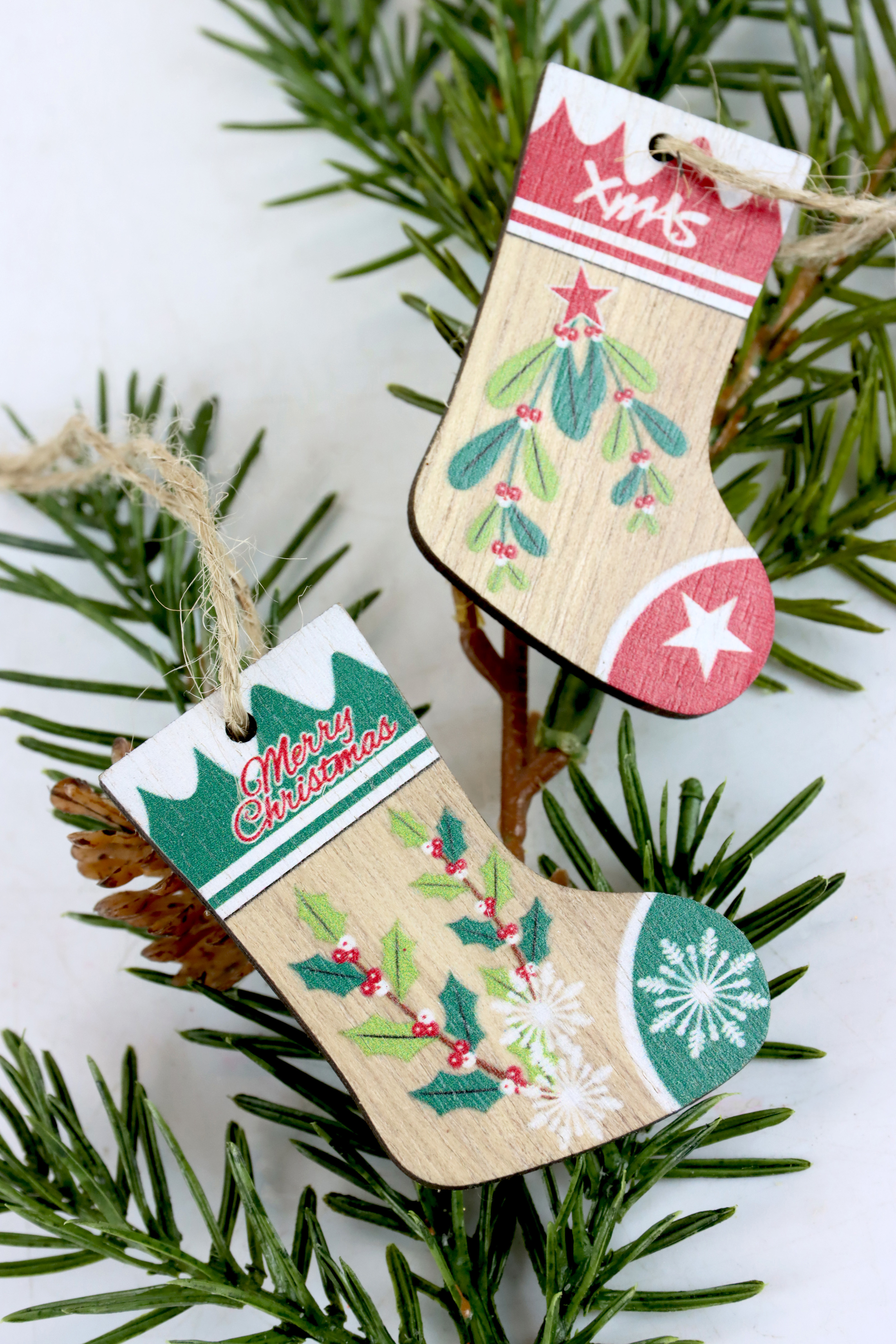 - Artículos de bota navideña de madera únicos, de aprox. 6 cm de altura