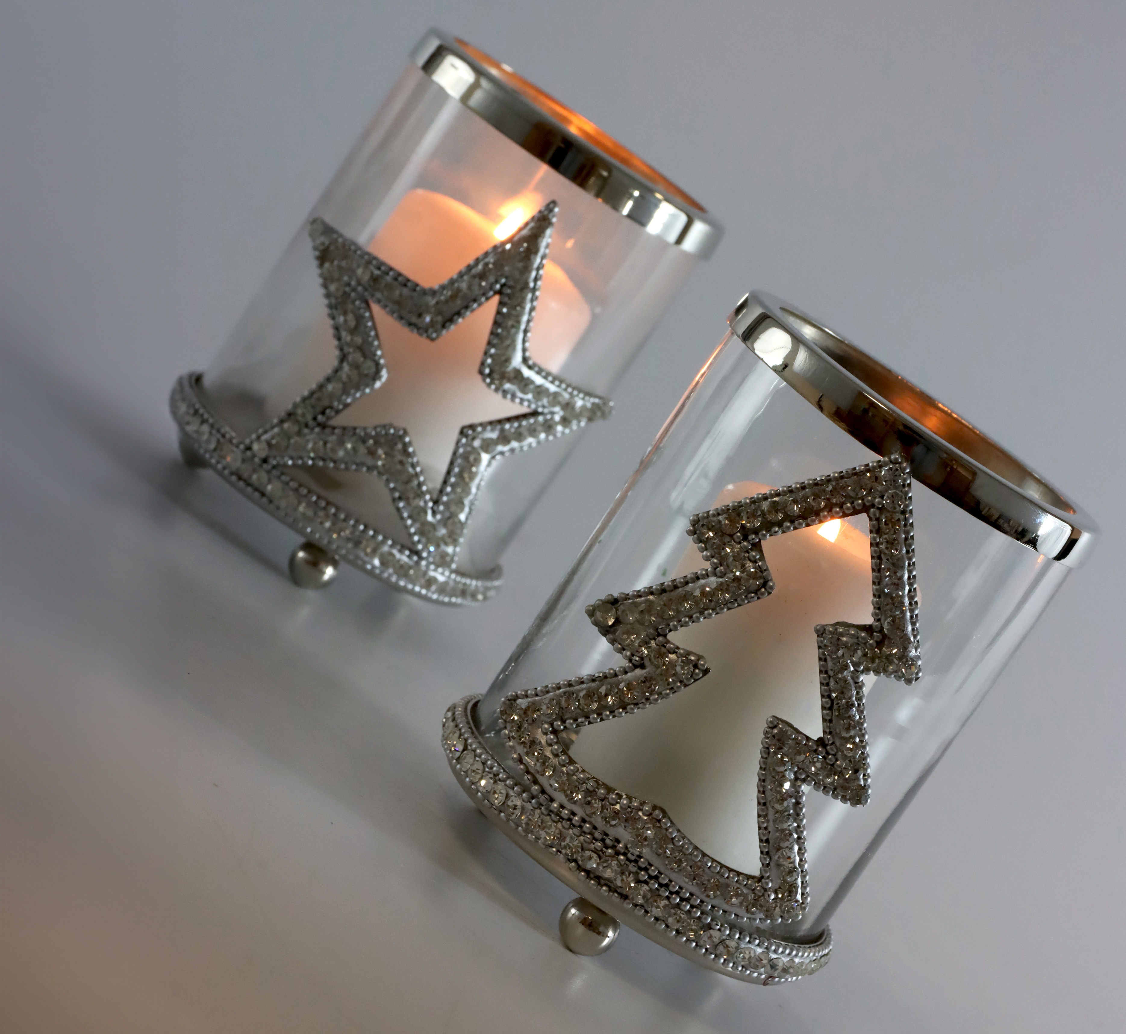 Los farolillos "Cristallo", número de artículo 9240, están diseñados para la temporada navideña y presentan motivos helados de árboles de Navidad y estrellas. Estos motivos invernales y navideños aportan un toque imaginativo y navideño a cualquier rincón. Fabricados en cristal y hierro niquelado, estos farolillos crean un ambiente cálido y acogedor y aportan una luz agradable a cualquier estancia en la que se coloquen.