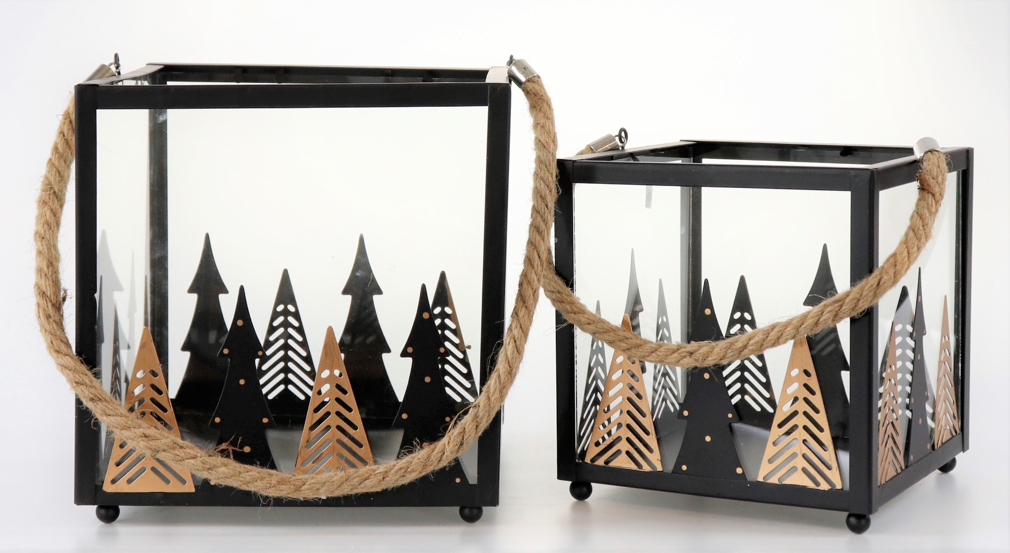 Las linternas "Bosque de invierno" se caracterizan por su diseño minimalista pero impactante. La estructura metálica negra confiere a los farolillos una elegancia atemporal, mientras que los elementos de cristal realzan el suave parpadeo de las velas para crear una atmósfera cálida y acogedora. Estas características los convierten en un producto complementario perfecto para los minoristas de hogar y estilo de vida que deseen ofrecer a sus clientes acentos de estilo para sus decoraciones navideñas.