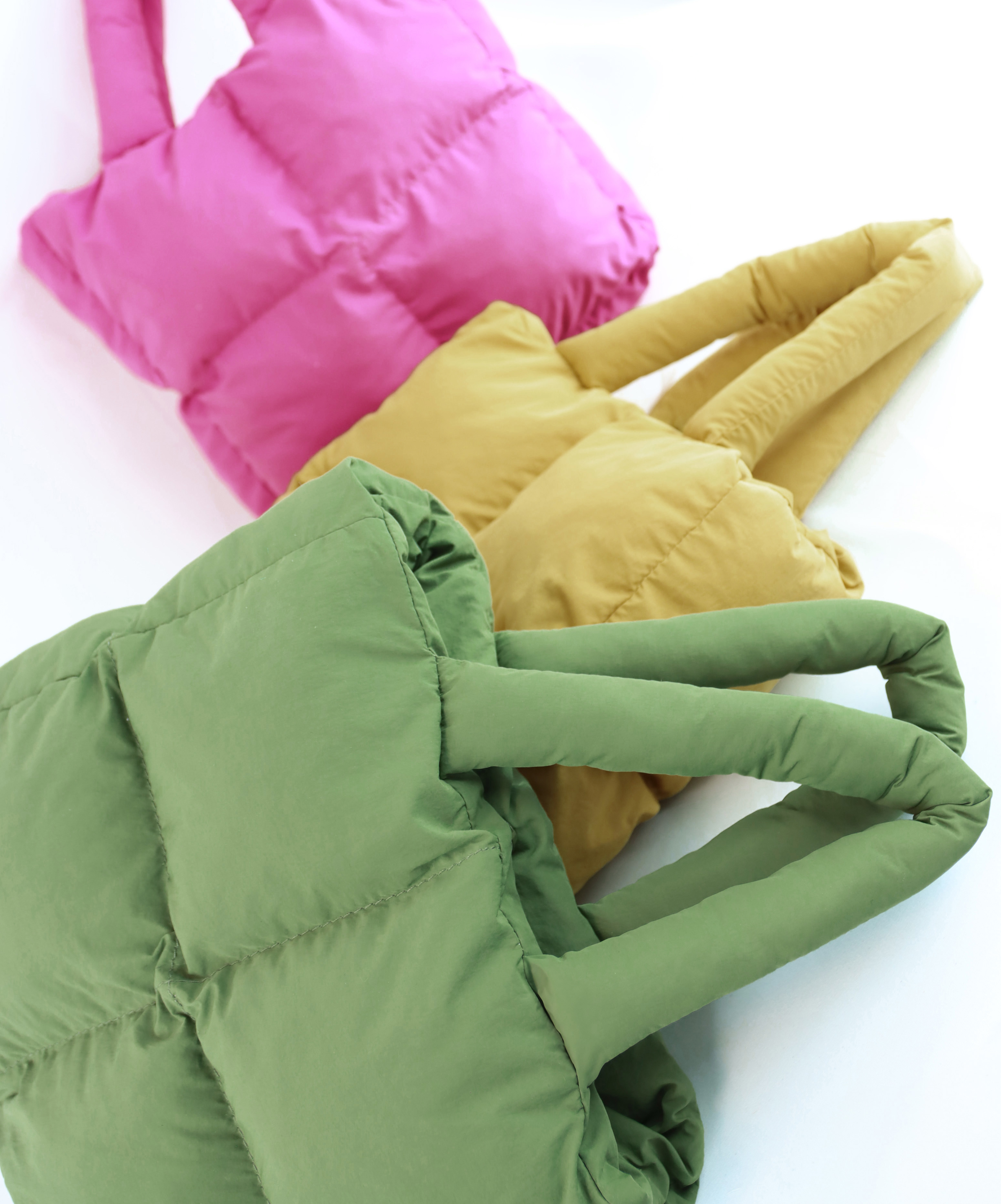 Las bolsas "PUFFY" se caracterizan por su material ligero pero robusto, que soporta sin problemas las exigencias diarias del comercio minorista. El uso de poliéster no sólo garantiza una larga vida útil, sino también un tacto confortable. Los vibrantes colores rosa, verde y amarillo añaden un acento fresco y alegre a cualquier atuendo y combinan a la perfección con las tendencias de la temporada.