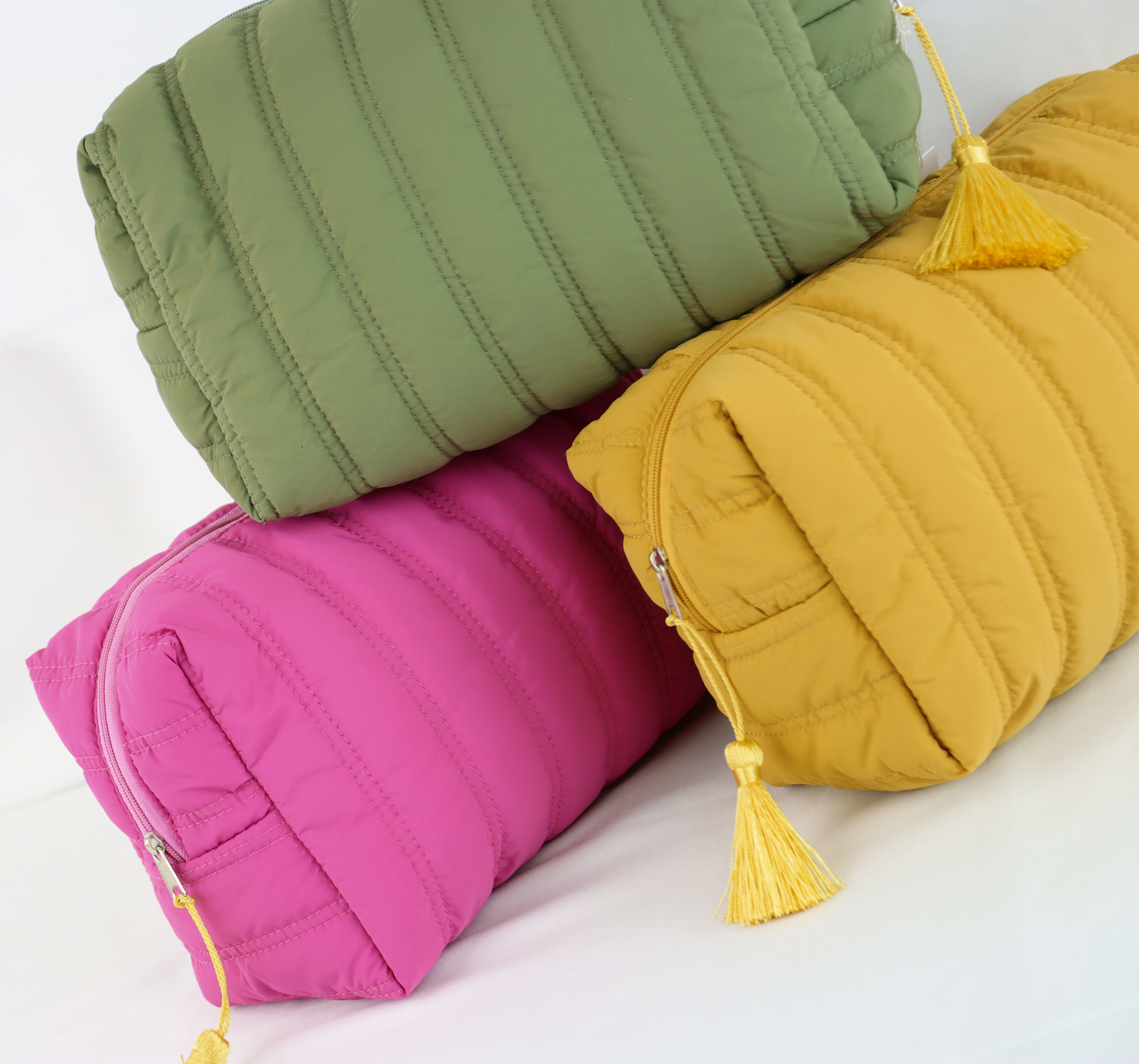 Enriquezca su gama de productos con el set de tres neceseres "Puffy" S/3, desarrollado especialmente para los minoristas del sector del hogar y el estilo de vida. Este set, compuesto por tres robustos y coloridos neceseres, aporta color y funcionalidad a la vida cotidiana de sus clientes. Los neceseres están disponibles en rosa, verde y amarillo vibrante y son perfectos para la temporada de otoño/invierno, para dar color a los días grises. Fabricados en poliéster de alta calidad, cada neceser mide unos 22 cm y ofrece espacio suficiente para todos los artículos de aseo y personales importantes.