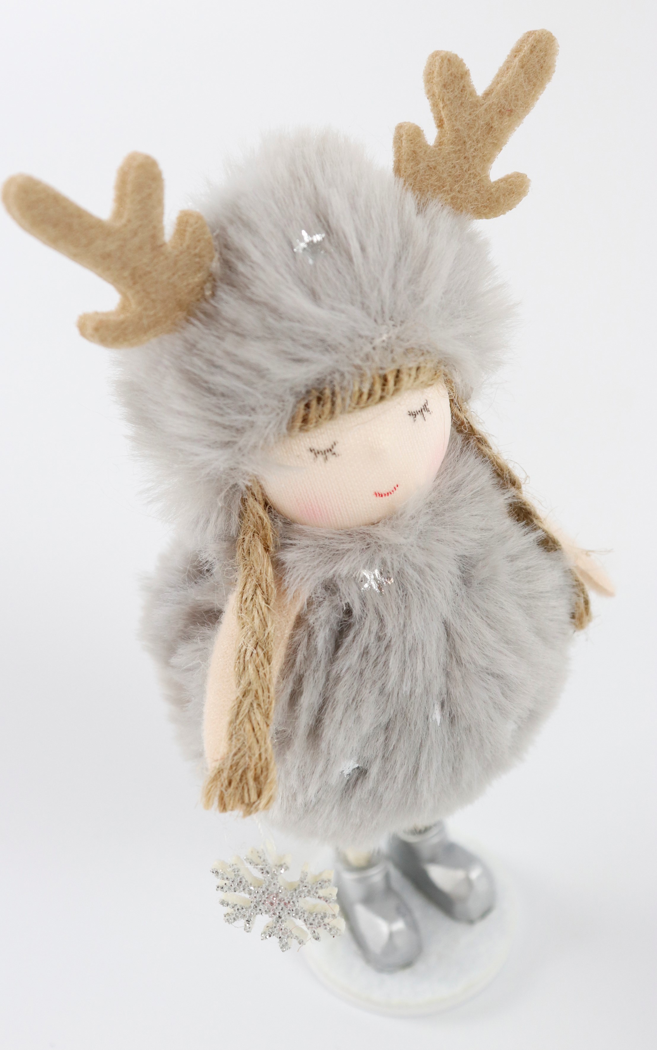 El conjunto está hecho de poliéster, algodón y piel sintética de alta calidad, y aporta una elegancia con estilo a cualquier ambiente. Las "chicas de invierno", que miden unos 21 cm, pueden usarse solas o en combinación con otros adornos navideños. Son perfectas para decorar escaparates, salas de ventas, salones o como adornos de mesa únicos.