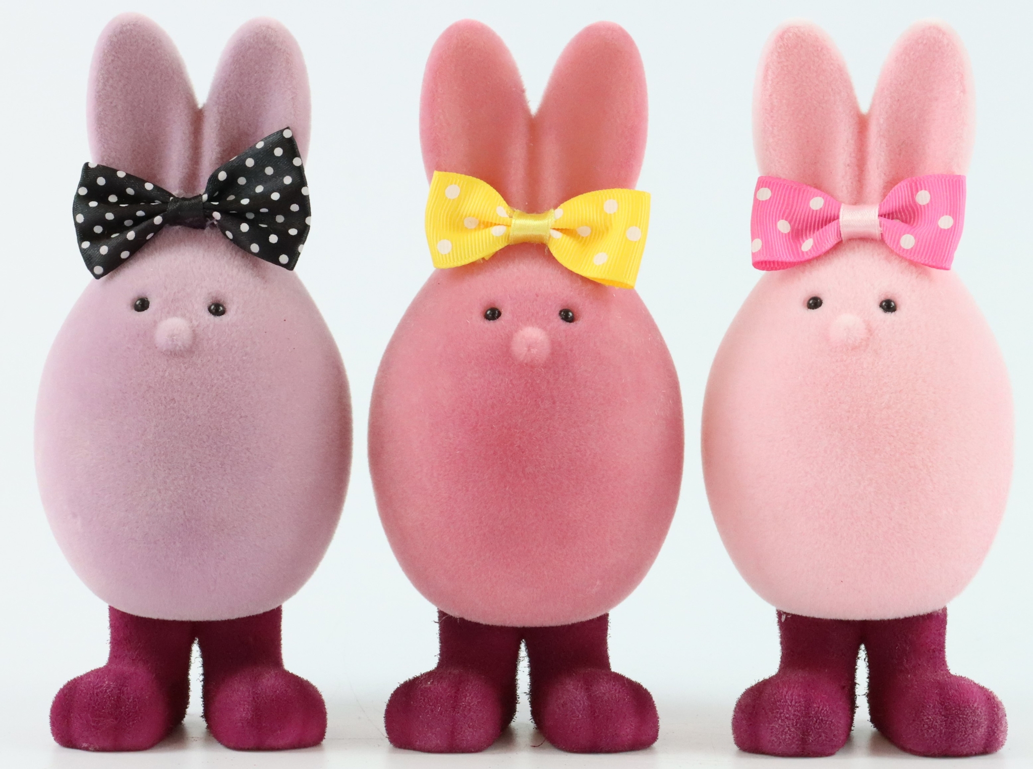 Con una altura de unos 20 cm, los HUEVOS DE PASCUA son ideales para exponerlos en escaparates, sobre mesas o como centro de atención en exposiciones de temporada. Su inusual combinación de huevo de Pascua y conejo atraerá la atención de los clientes y les animará a comprar. Estos decorativos polifacéticos no sólo destacan visualmente, sino que además son muy ligeros, lo que facilita su manipulación y presentación en la tienda.
