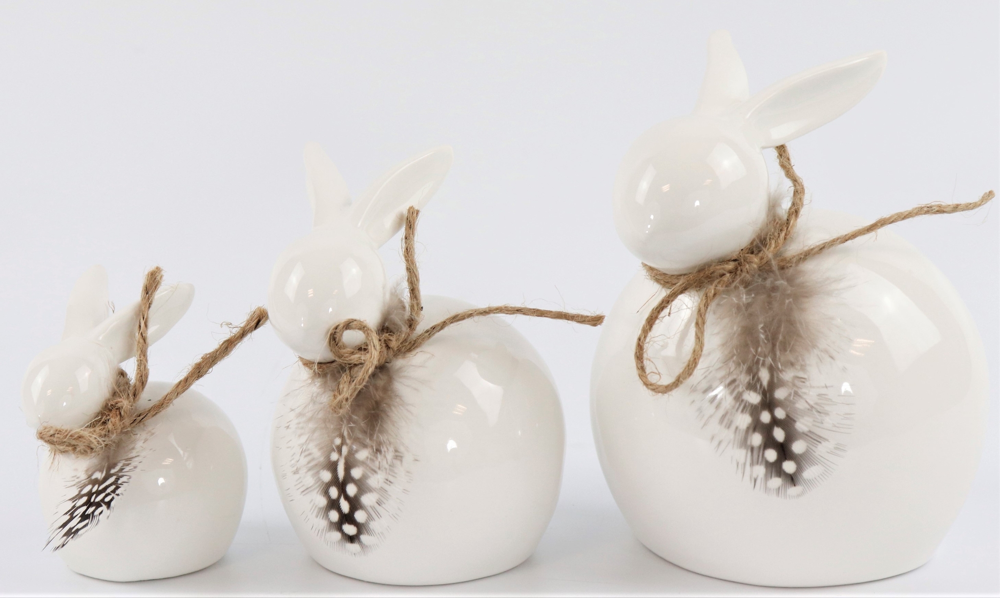 El HASENTRIO "FEATHERS" S/3 de porcelana es una excelente elección para su tienda de primavera y Pascua. Aproveche la oportunidad de ampliar su gama de productos con un tesoro decorativo que ofrece a sus clientes una idea única de decoración de Pascua. Cree momentos inolvidables y una decoración excepcional que será el punto culminante de cualquier colección de primavera.