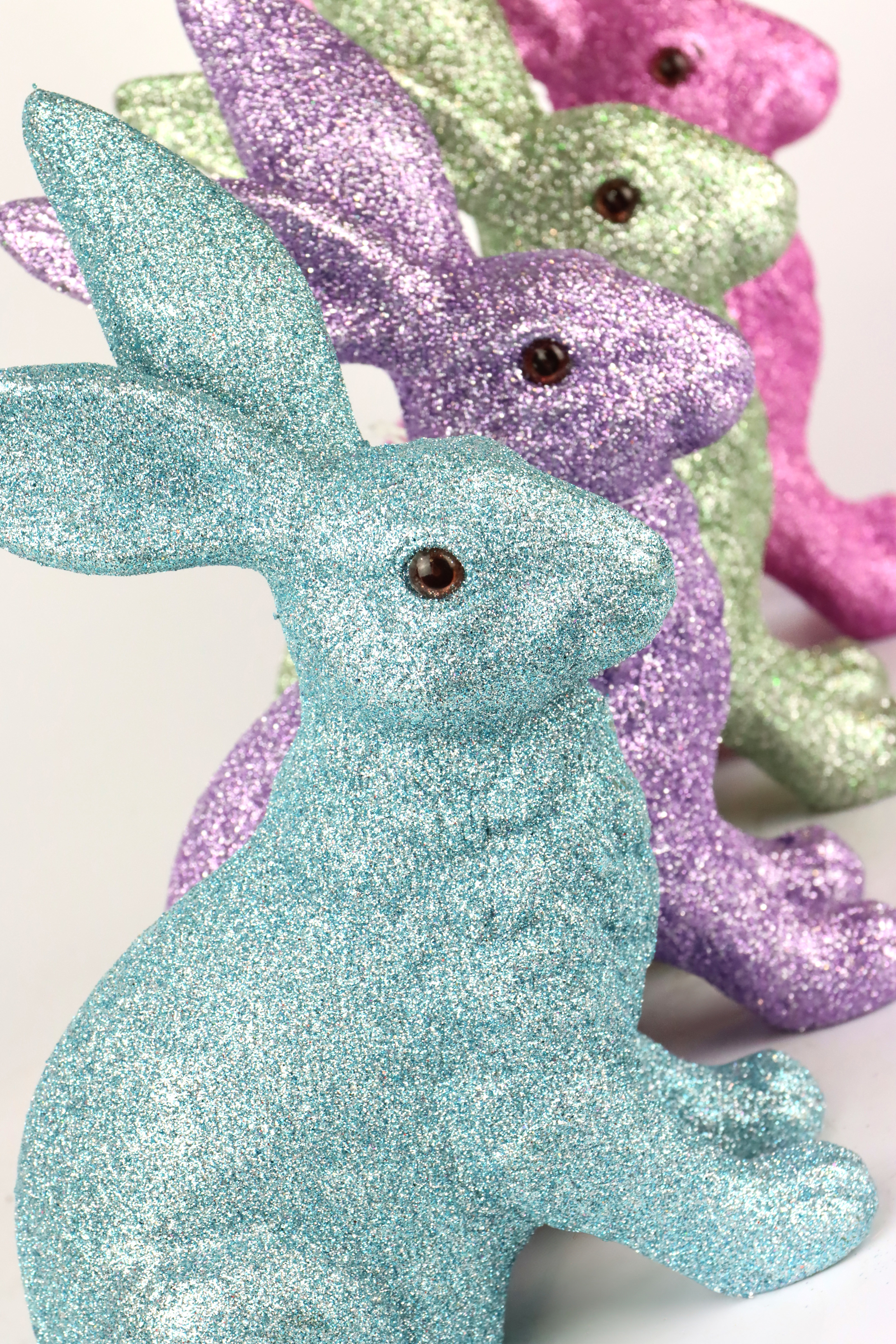 - Juego exclusivo de 4 piezas**: Cuatro conejitos detallados con una altura de aprox. 24 cm.