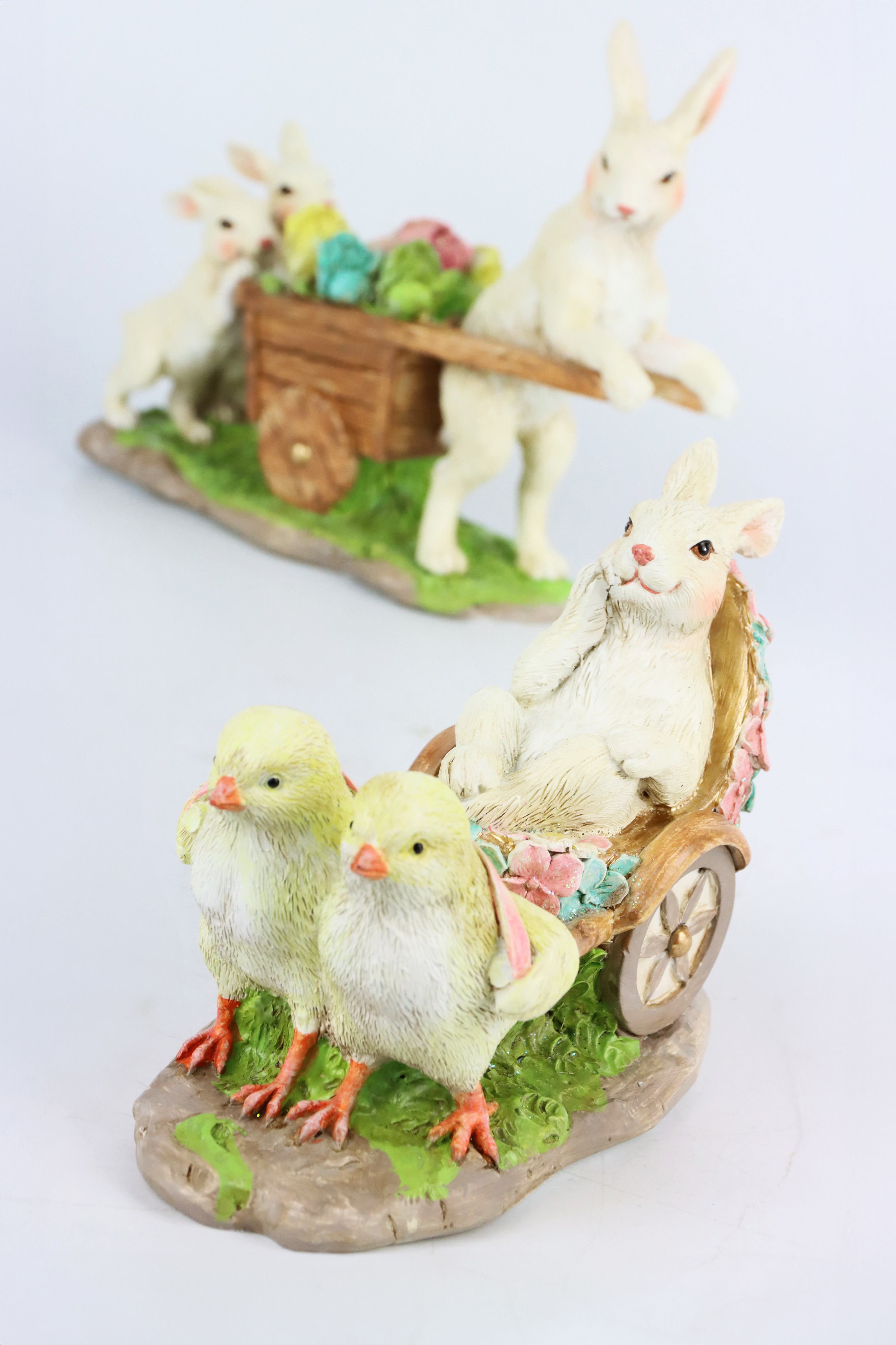 ES¡Bienvenido al mágico mundo de la Pascua con nuestras exclusivas figuras de conejo "Fiesta Pastel"! Este exquisito set se compone de dos figuras de conejo hábilmente diseñadas que miden aproximadamente 14,5 cm y 16 cm, y que añadirán un toque de magia primaveral a cualquier habitación. Fabricadas en poliresina de alta calidad, estas figuras combinan durabilidad con un diseño estético que ha sido especialmente desarrollado para la venta al por menor en el sector del hogar y el estilo de vida.