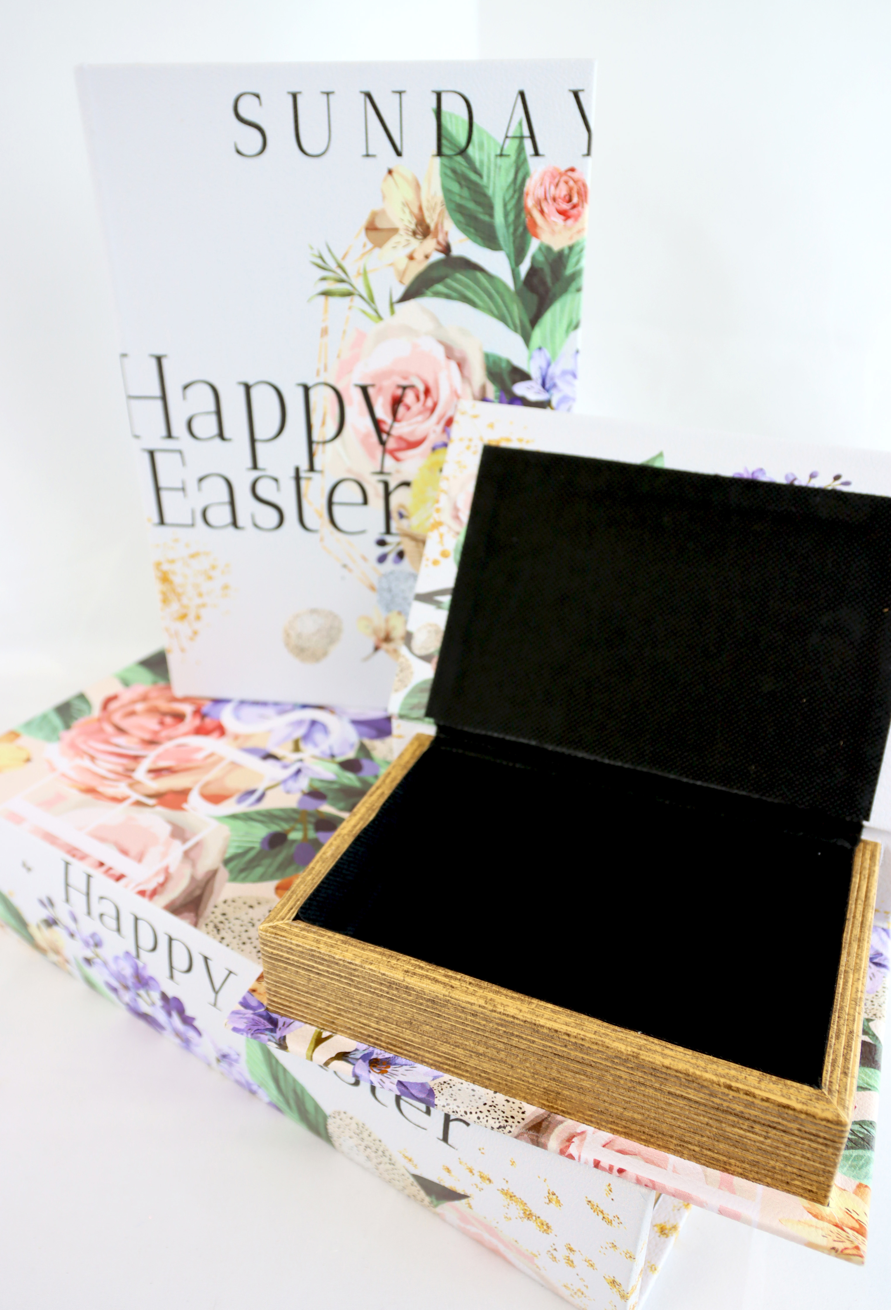 Añada ambiente a su tienda en Semana Santa con el elegante juego de folios "FELIZ PASCUA". Este set de cajas decorativas con forma de libro combina elegancia y funcionalidad y ofrece una solución ideal para almacenar y decorar. Fabricado en madera de alta calidad y diseñado en un clásico color blanco, el set combina el uso práctico con el encanto estético y atrae a los clientes que aprecian los artículos inusuales para el hogar y el estilo de vida.