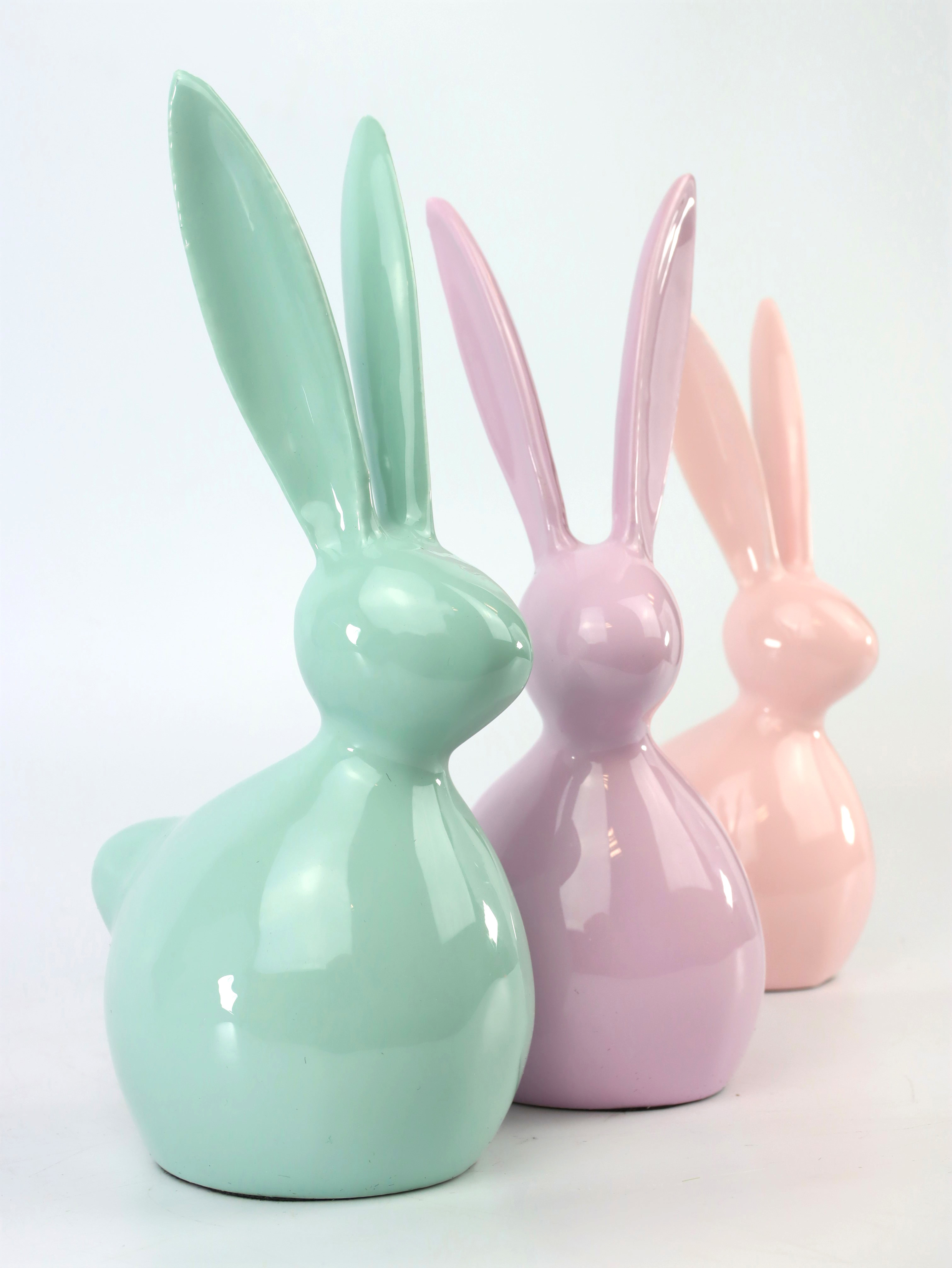 - Juego de conejitos de metal de alta calidad con tres figuras en armoniosos colores pastel