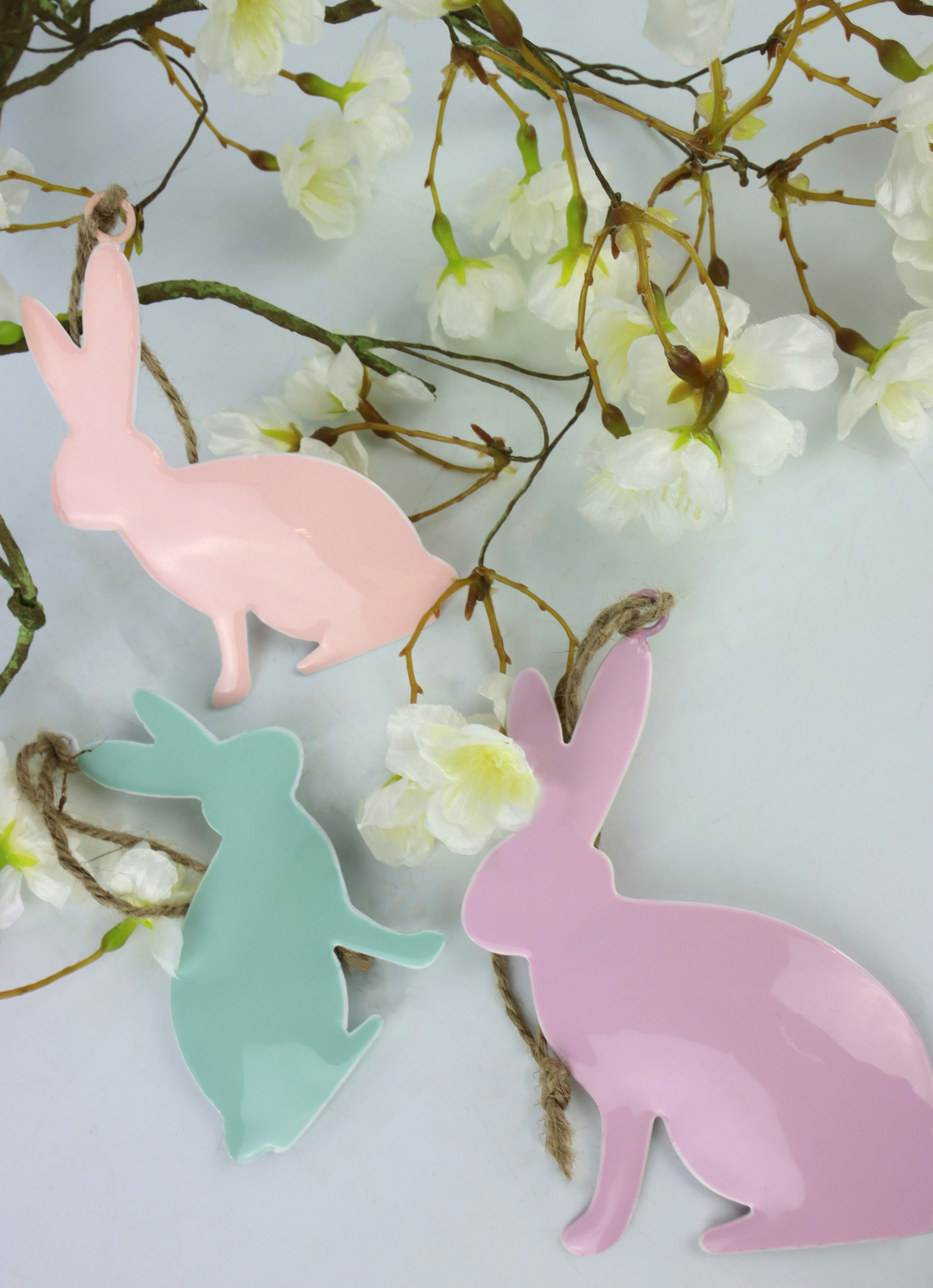 ES### Descripción del producto: COLGADOR DE METAL "BUNNY" S/6 - Decoración de Pascua para el comercio minorista