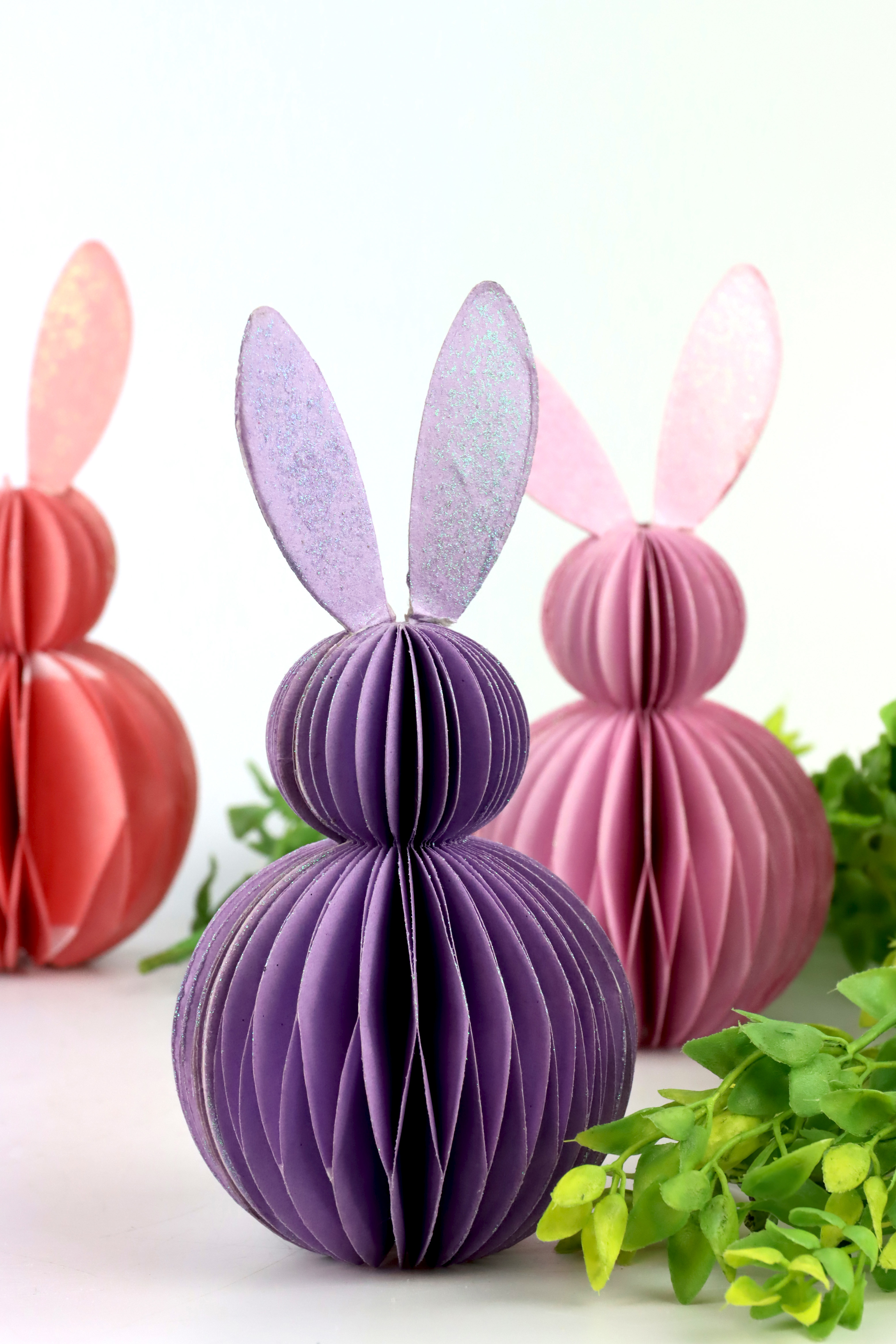 ¡Bienvenido a la primavera! Con nuestro set de conejitos decorativos "Panal", podrá llevar momentos frescos y alegres de Pascua directamente a su tienda. Este elegante set de 3 piezas se compone de detallados conejitos decorativos en suaves tonos morados. Están hechos de papel de alta calidad y miden unos 16 cm de alto cada uno. Estos elegantes adornos de Pascua darán instantáneamente a cualquier habitación un ambiente acogedor y elegante que hará las delicias de sus clientes.