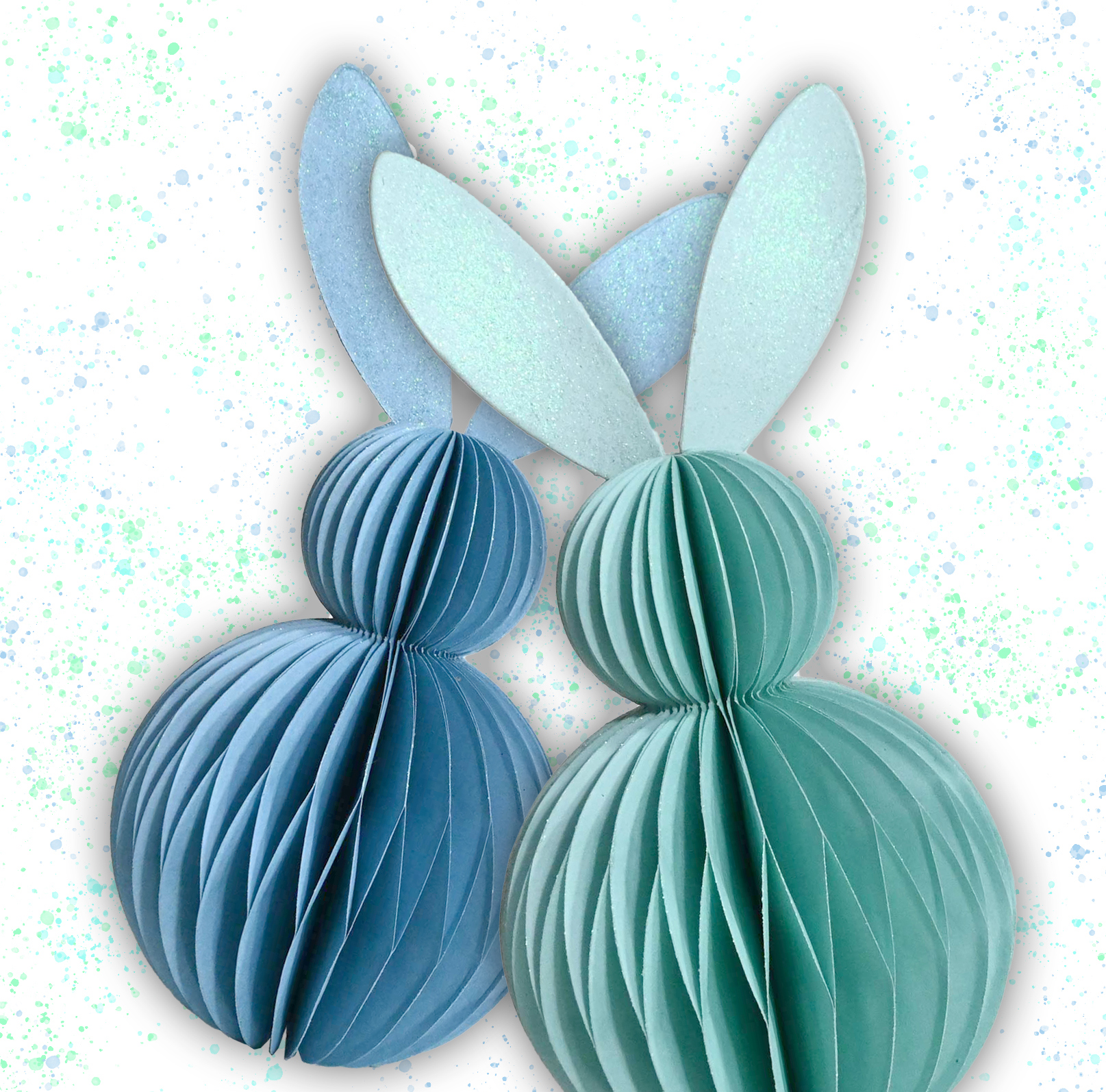 - Conejitos decorativos de papel de aprox. 22 cm con estructura de nido de abeja