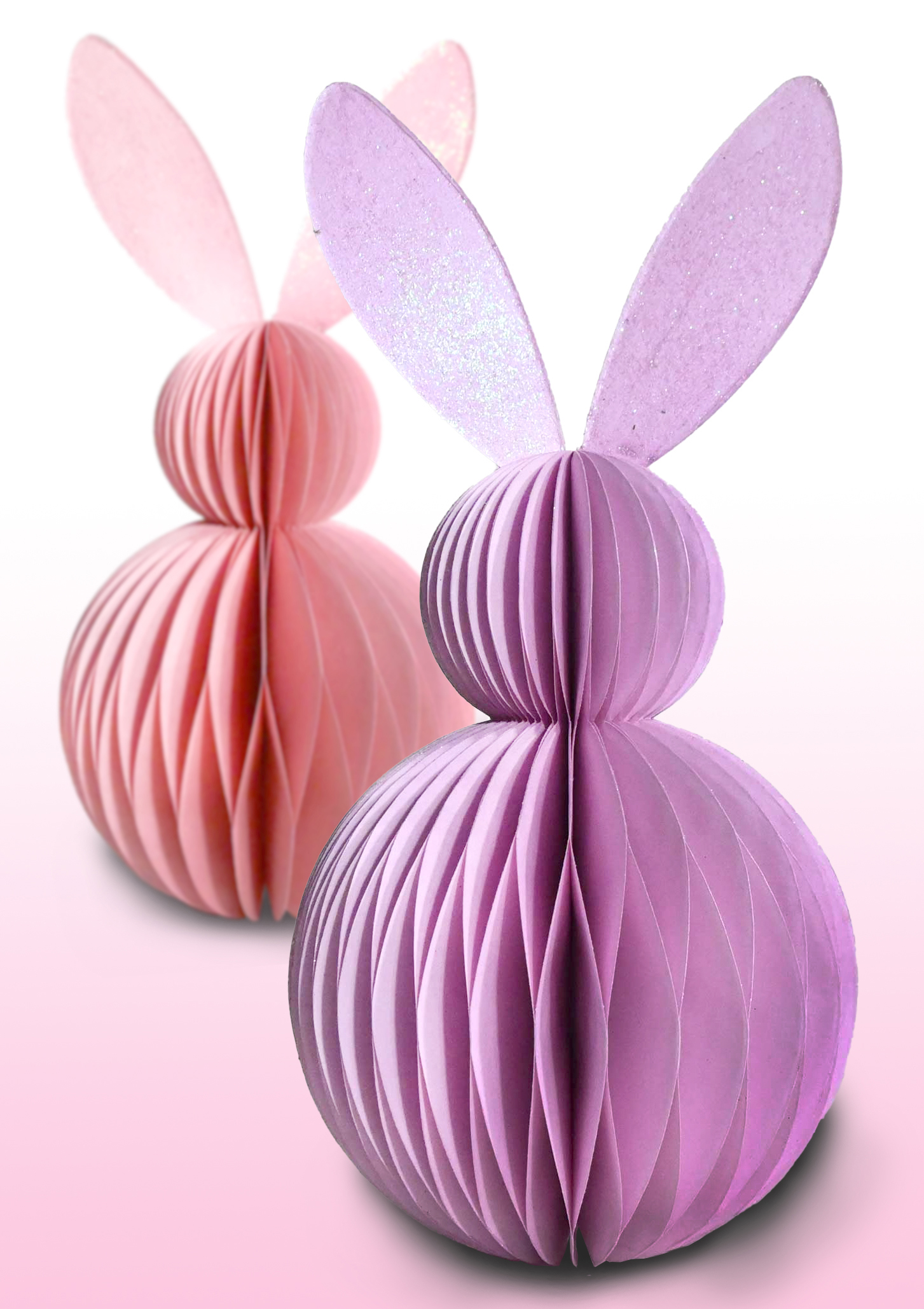 Dé un toque especial a su sala de ventas en Pascua con el encantador set decorativo de 3 piezas "Honeycomb" en elegantes tonos morados. Estos elementos decorativos únicos no sólo atraen todas las miradas, sino que también crean un ambiente alegre y acogedor que encantará a sus clientes. Cada conejito del set está hecho de papel de alta calidad y mide aproximadamente 30 cm, el tamaño ideal para lucir en escaparates y mesas de venta.