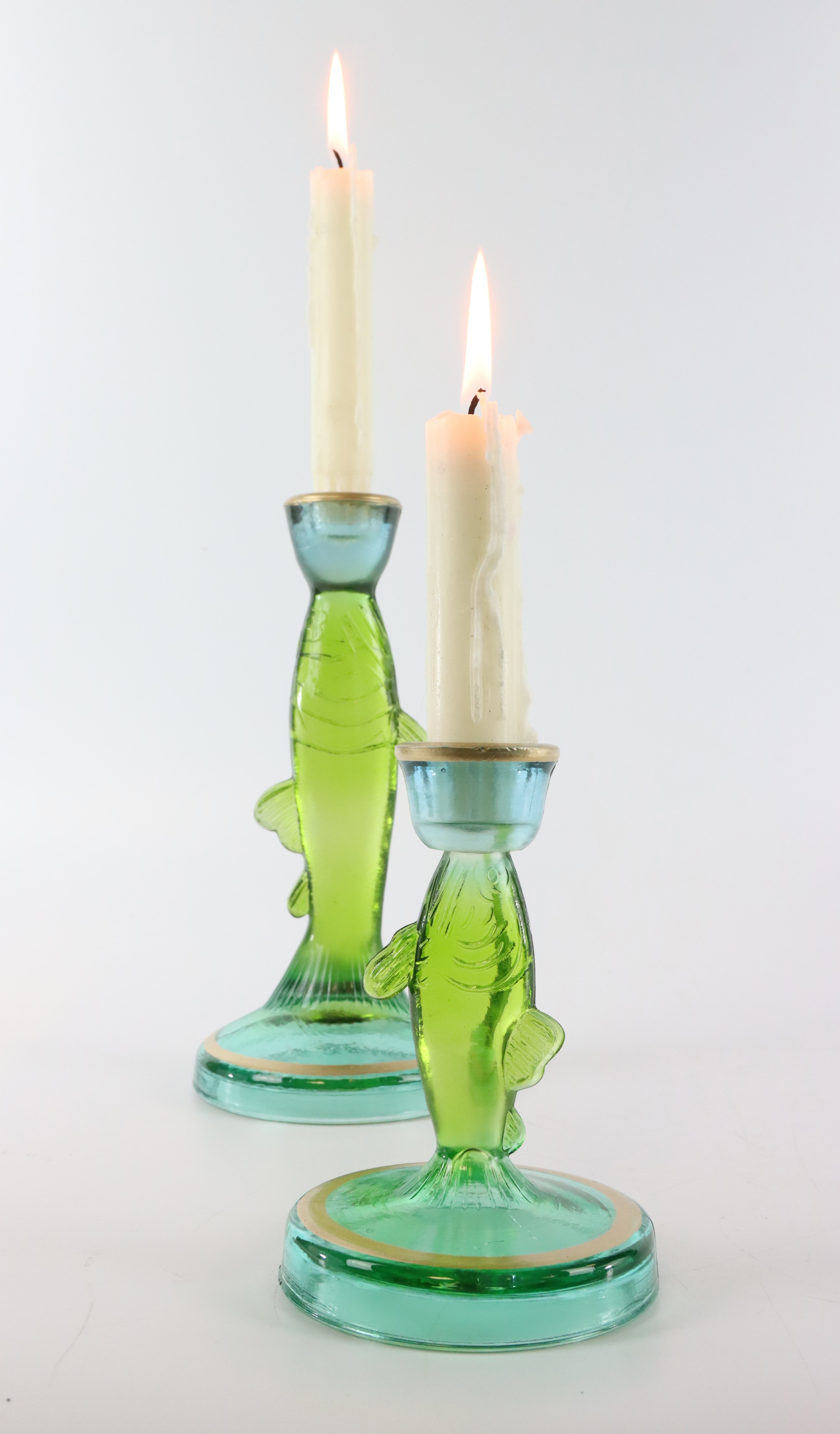 Estas lámparas de diseño artístico en forma de pez encajan a la perfección en cualquier ambiente y crean acentos naturales modernos y atemporales. El refrescante matiz verde del cristal crea un ambiente luminoso y acogedor, ideal para las ventas de primavera y verano. Sus clientes apreciarán el encanto único de estas piezas decorativas, que pueden utilizarse tanto como adornos de mesa como llamativos escaparates.