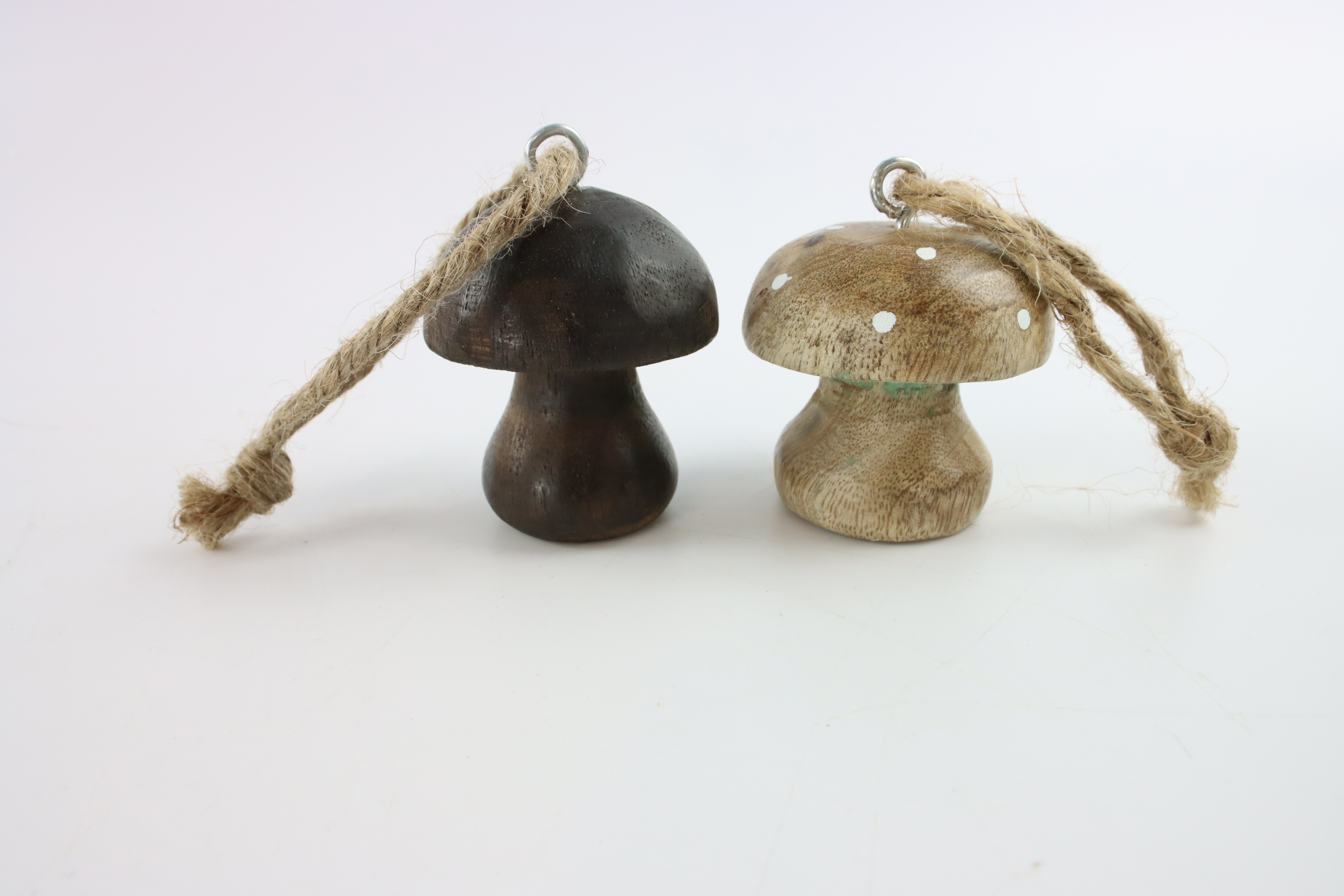 Nuestro set de decoración consta de colgantes de setas cuidadosamente tallados en resistente madera de mango. Cada colgante de seta mide aproximadamente 5 cm y está hecho a mano, por lo que cada pieza es única. El encanto natural de la madera de mango, combinado con el preciso trabajo artesanal, hace de estos colgantes un encantador reclamo.