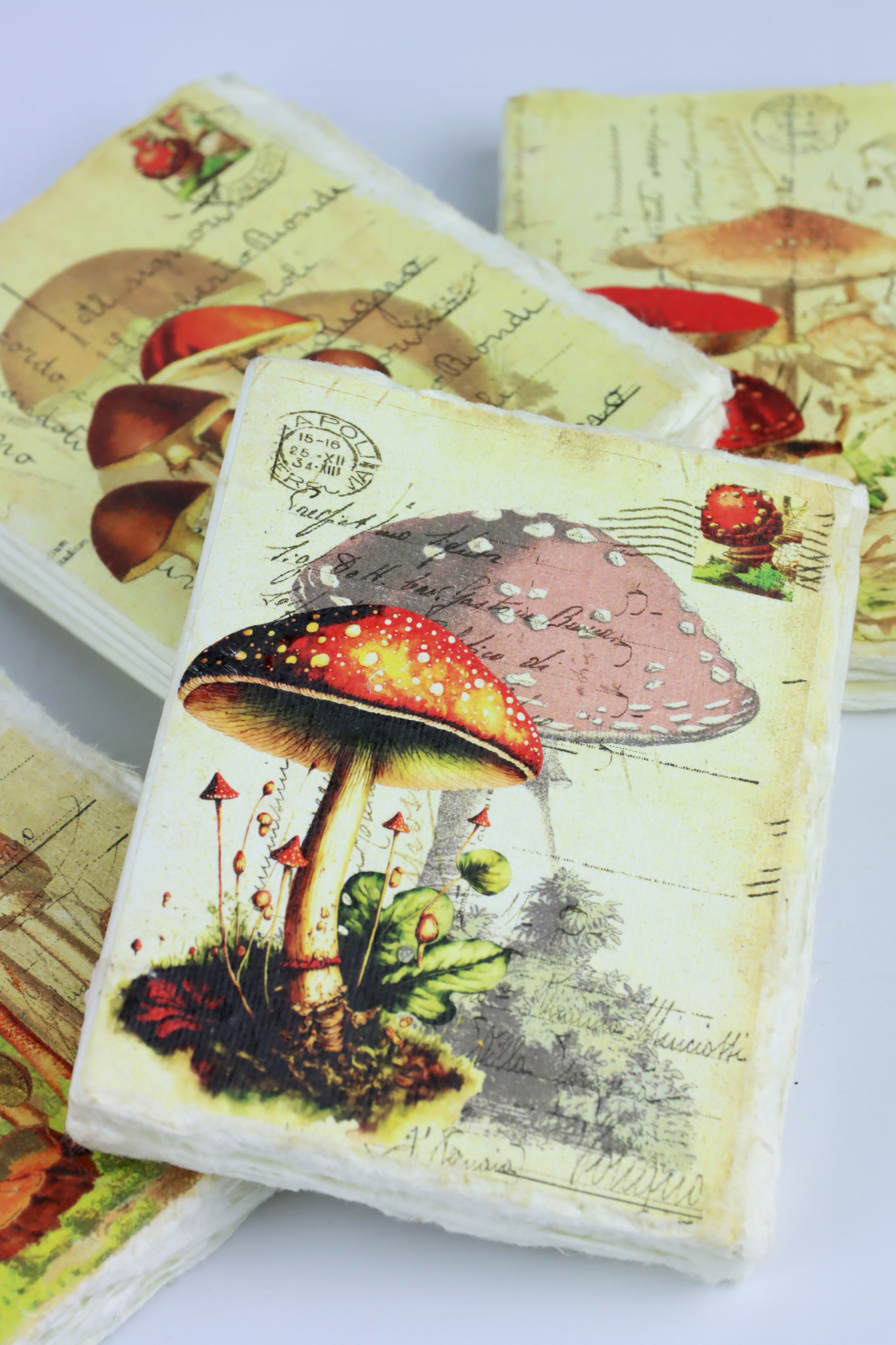 - Juego de cuatro cuadernos con un atractivo diseño de "seta de la suerte