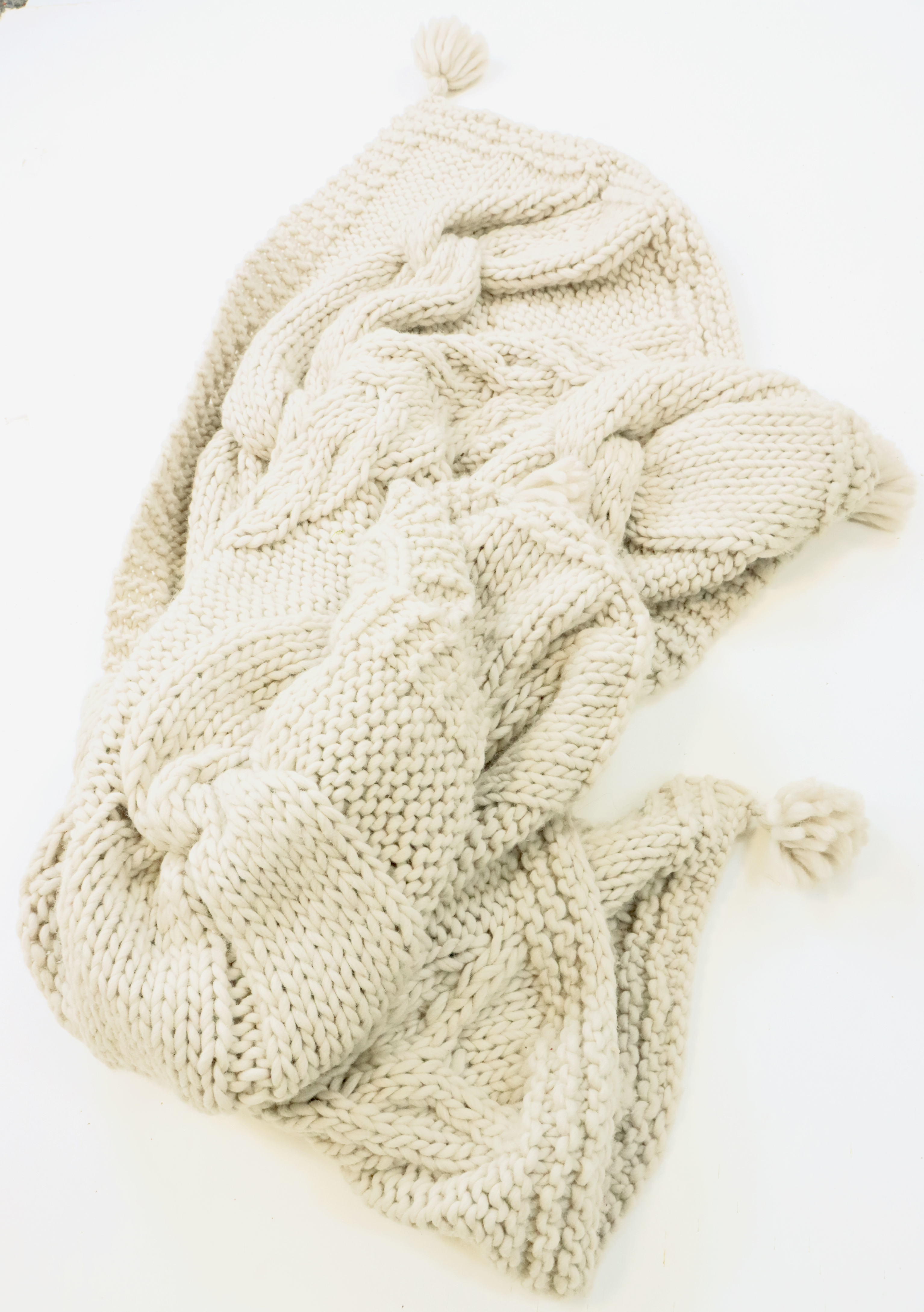 Mots clés : couverture en tricot "Chalet", couverture en coton, couverture d'automne, couverture d'hiver, textiles d'intérieur, accessoires pour la maison, commerce de détail, Lifestlye, produits en coton, durabilité.