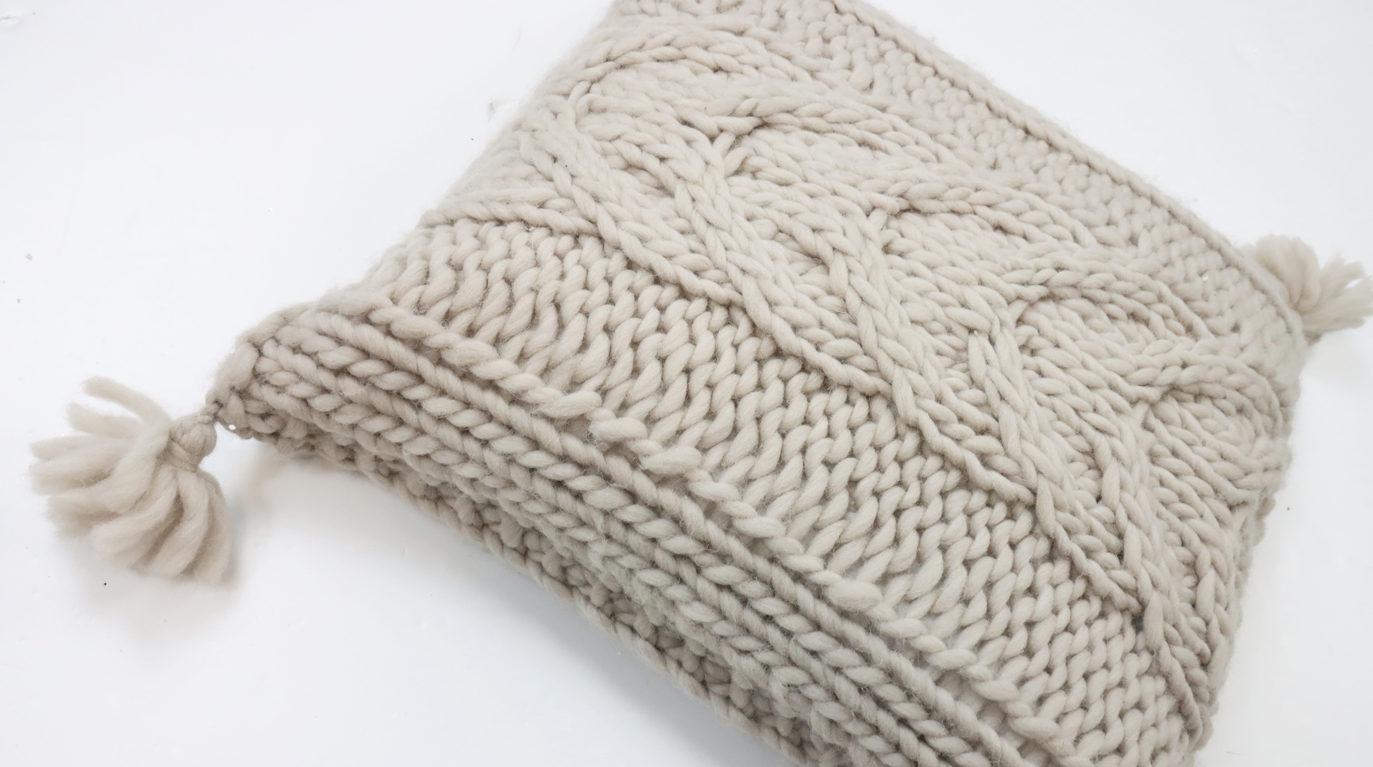Mots-clés : housse de coussin en tricot, coton, accessoire pour la maison, automne/hiver, style de vie, confort, commerce de détail, commerce stationnaire.
