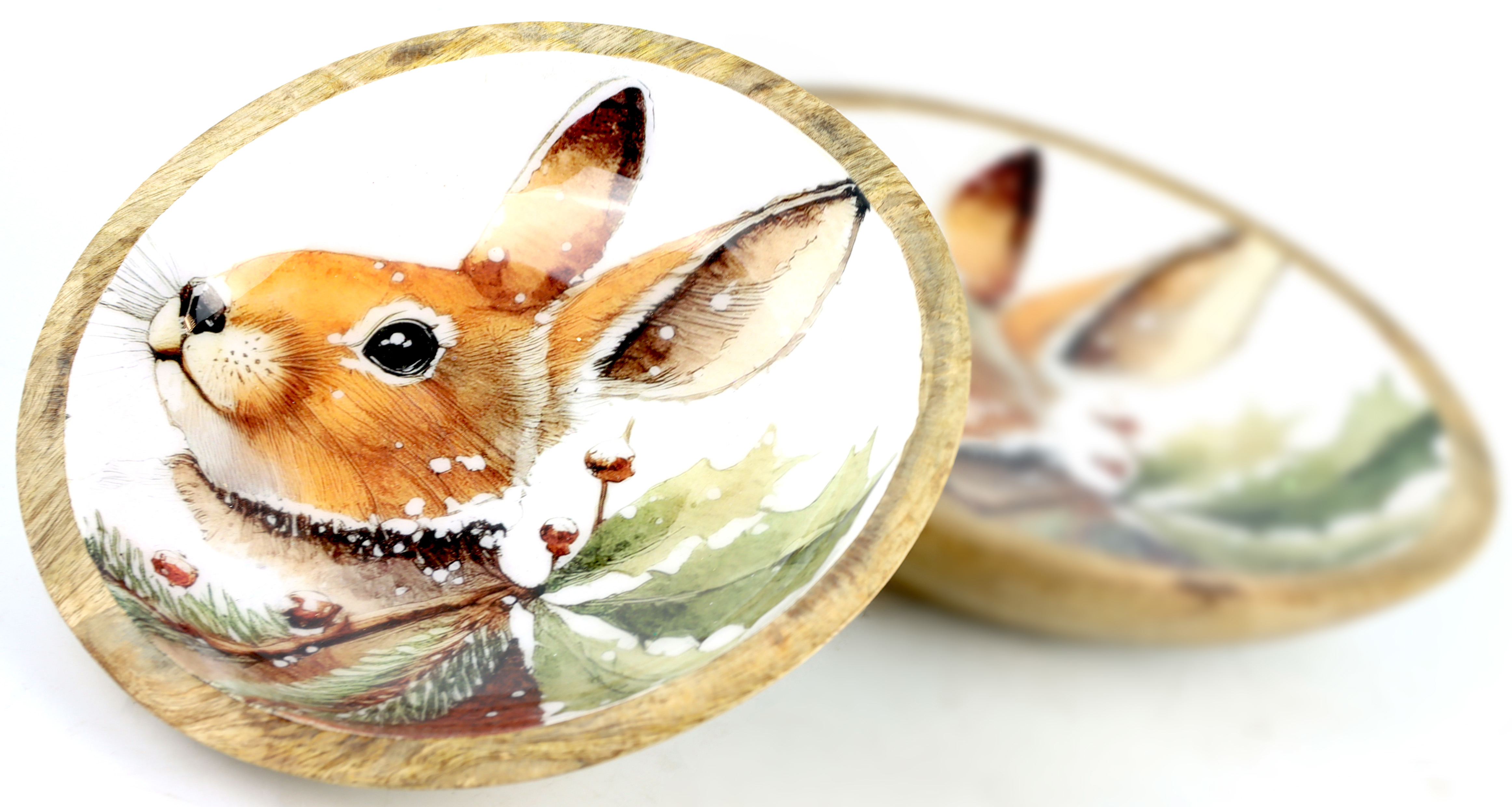 Bienvenue dans le monde enchanteur des accessoires pour la maison ! Découvrez nos coupes en bois exclusives "Lapin des neiges" en set de 2 pièces, qui donneront à votre commerce de détail une touche incomparable d'élégance et de naturel. Ces ravissantes coupes en bois ne sont pas seulement un point fort visuel, mais aussi un accessoire parfait pour enrichir votre portefeuille de produits en automne et en hiver.