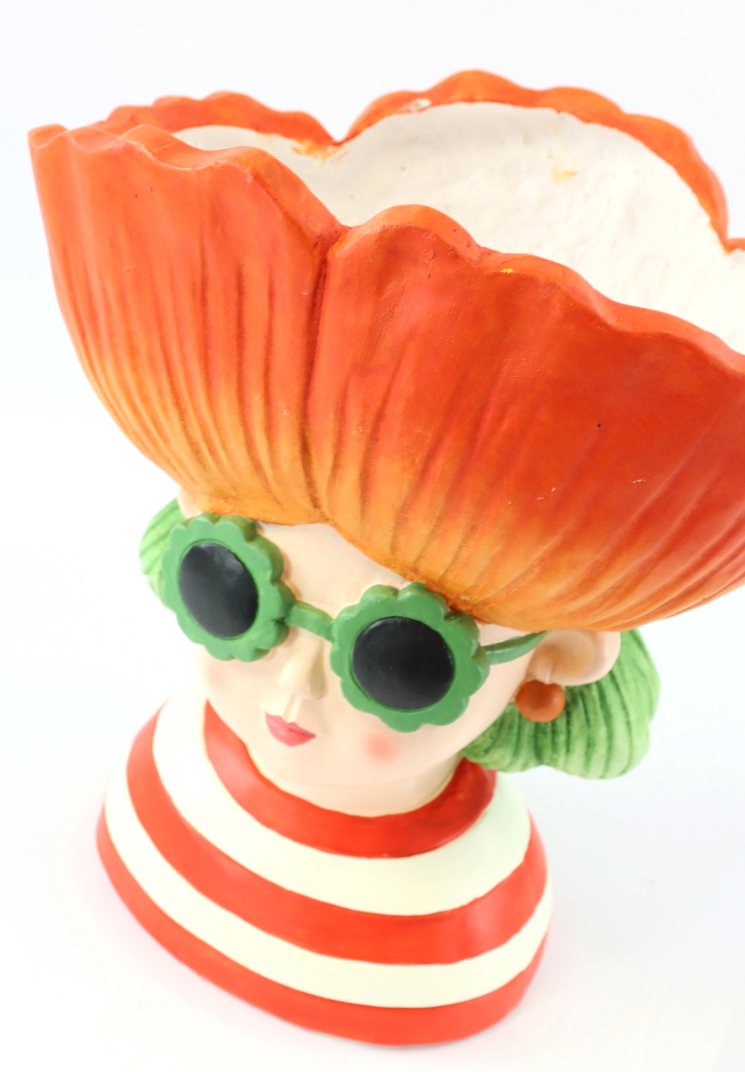 Provate la bellezza e l'eleganza della fioriera "POPPY GIRL", un elemento decorativo unico per il vostro negozio o showroom. Questa fioriera dal design artistico combina in modo affascinante l'uso funzionale con il design estetico. La "POPPY GIRL" è un imponente oggetto vegetale a forma di testa di donna con un magnifico fiore rosso, che riflette perfettamente la freschezza e la vitalità della stagione primavera/estate.